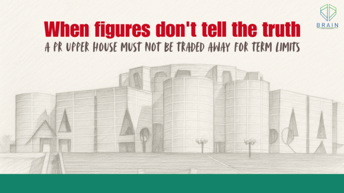 Suppose passing the constitutional amendment in the upper house also requires a two-thirds majority; in that case, under BNP’s preferred method, they would have 69 of 100 upper house seats, whereas under the alternative, they would have 41. This difference is crucial—the first method will leave us at the mercy of a future would-be despot, whereas the second one can significantly reduce the risks of brute majoritarian despotism.