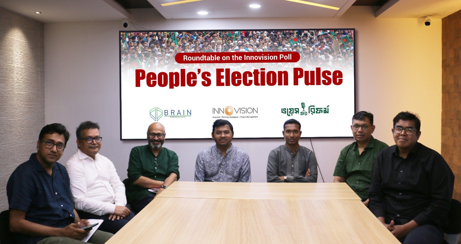 আজ ১৫ মার্চ ২০২৫ শনিবার সকাল ১১টায় বাংলাদেশ রিসার্চ এনালাইসিস এন্ড ইনফরমেশন নেটওয়ার্ক (ব্রেইন), ইনোভিশন এবং ভয়েস অফ রিফর্মসের যৌথ উদ্যোগে ইনোভিশনের জরিপের ভিত্তিতে People’s Election Pulse: February-March, 2025 শীর্ষক একটি গোলটেবিল আলোচনা অনুষ্ঠিত হয়েছে।